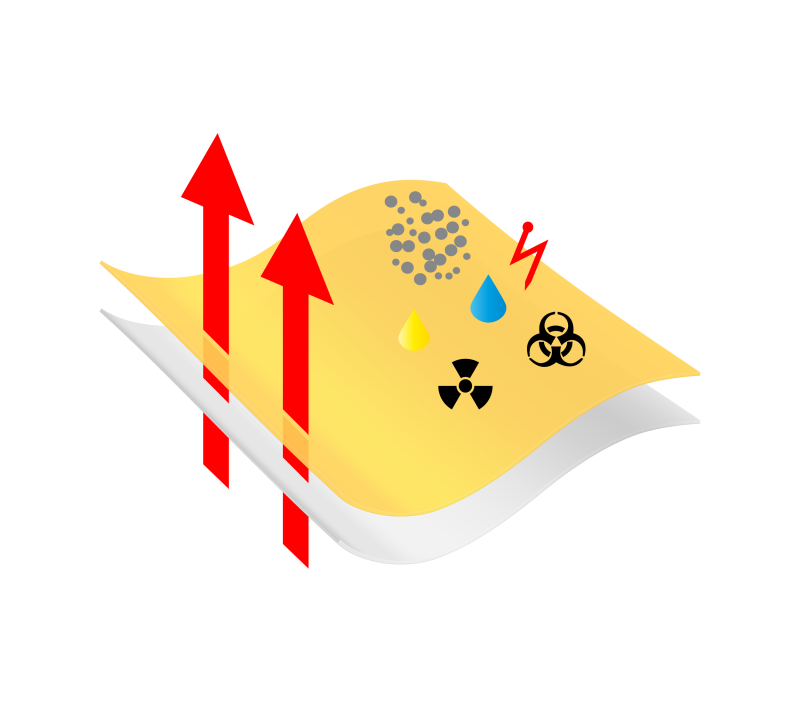 1) Barrier Film – étanche aux produits chimiques et aux particules (contre liquides, gaz, aérosols).